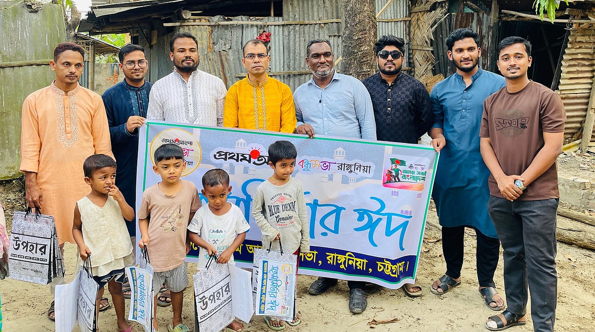 রাঙ্গুনিয়ার প্রত্যন্ত জনপদের সুবিধাবঞ্চিত মানুষের মুখে হাসি ফোটাতে তাদের সঙ্গে ঈদের আনন্দ ভাগাভাগি করে নিয়েছেন রাঙ্গুনিয়া বন্ধুসভার বন্ধুরা। ১৩ মার্চ উপজেলার বিভিন্ন এলাকায় বসবাসরত ৫০টি শিশুকে নতুন জামা ও তাদের পরিবারের জন্য খাদ্যসামগ্রী উপহার দেওয়া হয়।